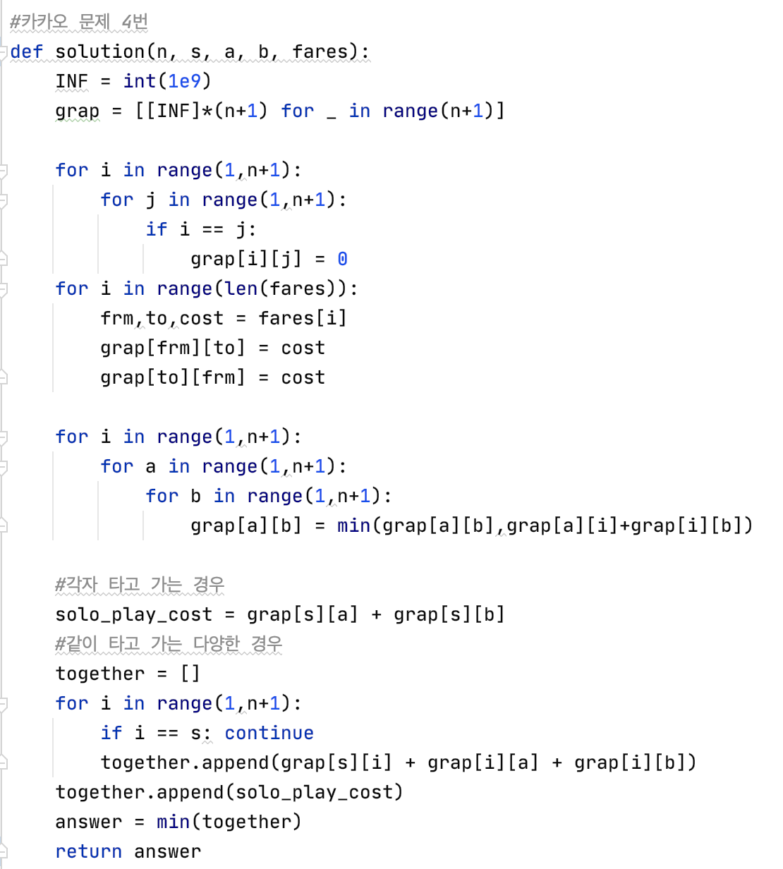 4번 택시 최단경로 문제