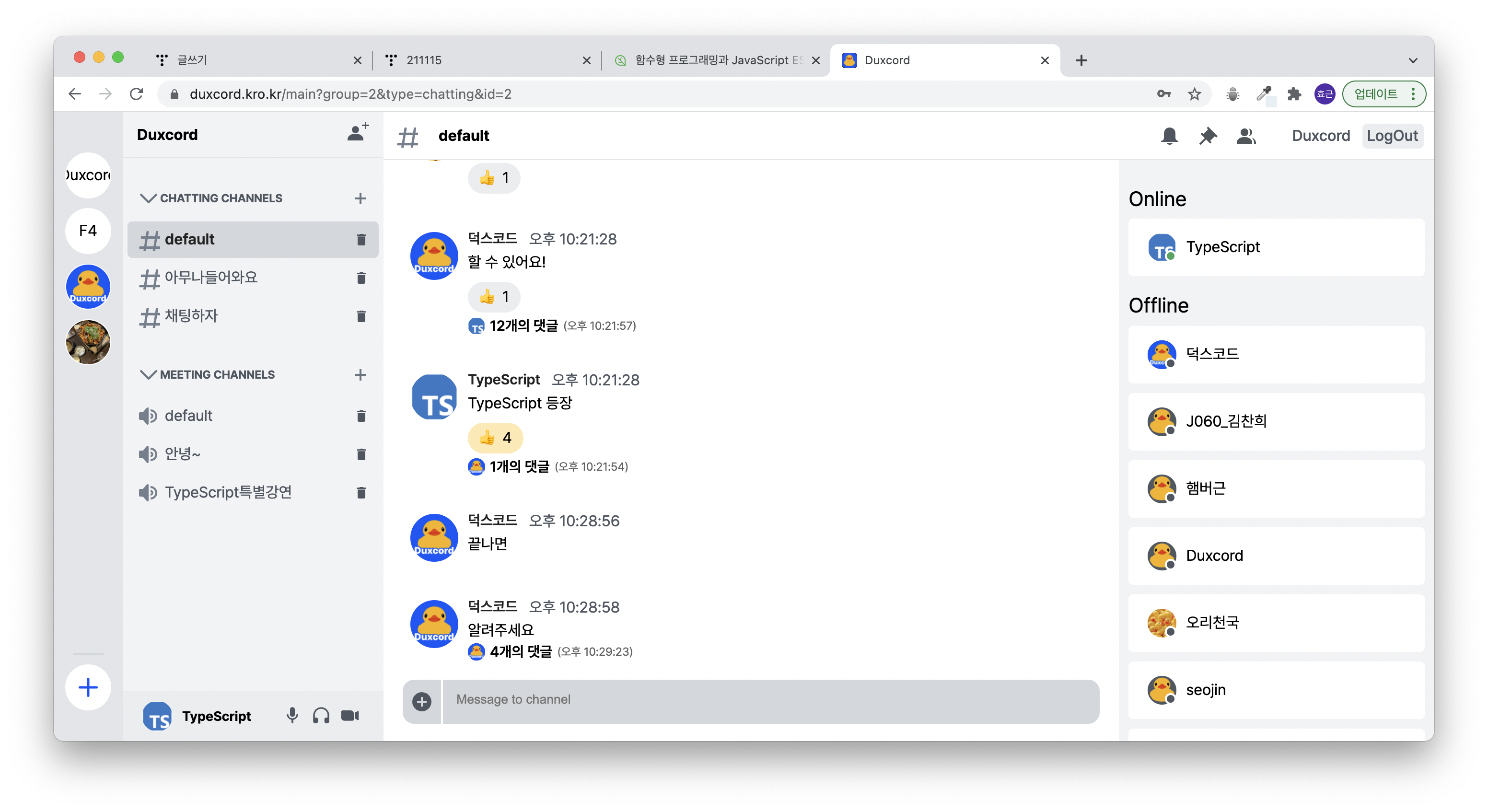 오늘은 게더타운에서 저희가 1주일동안 만든 결과물을 자랑했어요~! 어때요~? 진짜 디스코드같죠?