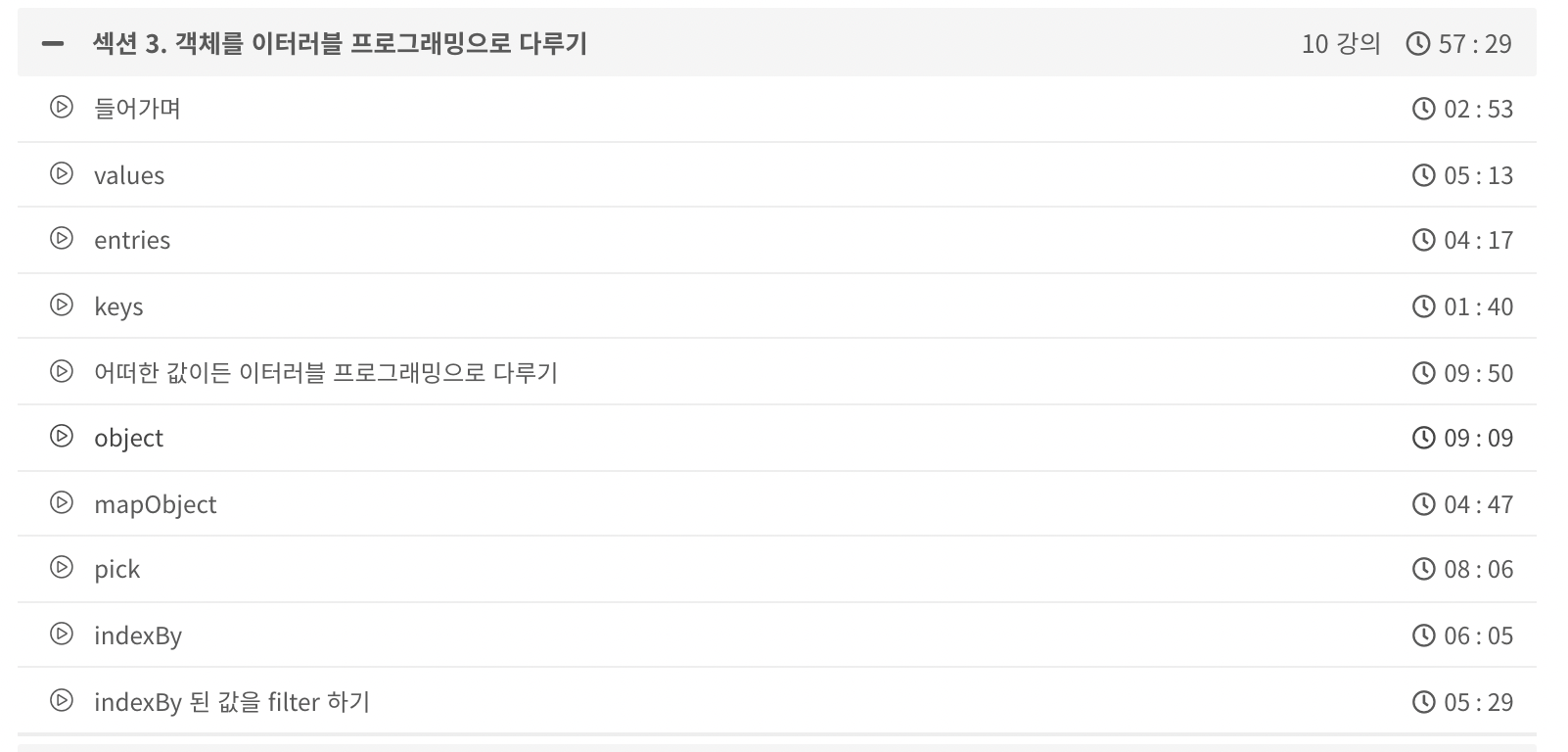 오늘은 객체를 이터러블로 다루는 스킬들에 대해서 배웠어요~! 재밌었어요!