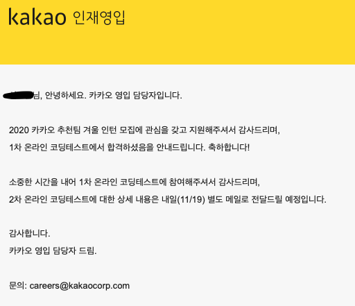 카카오 추천팀의 겨울 인턴십에 지원했다.