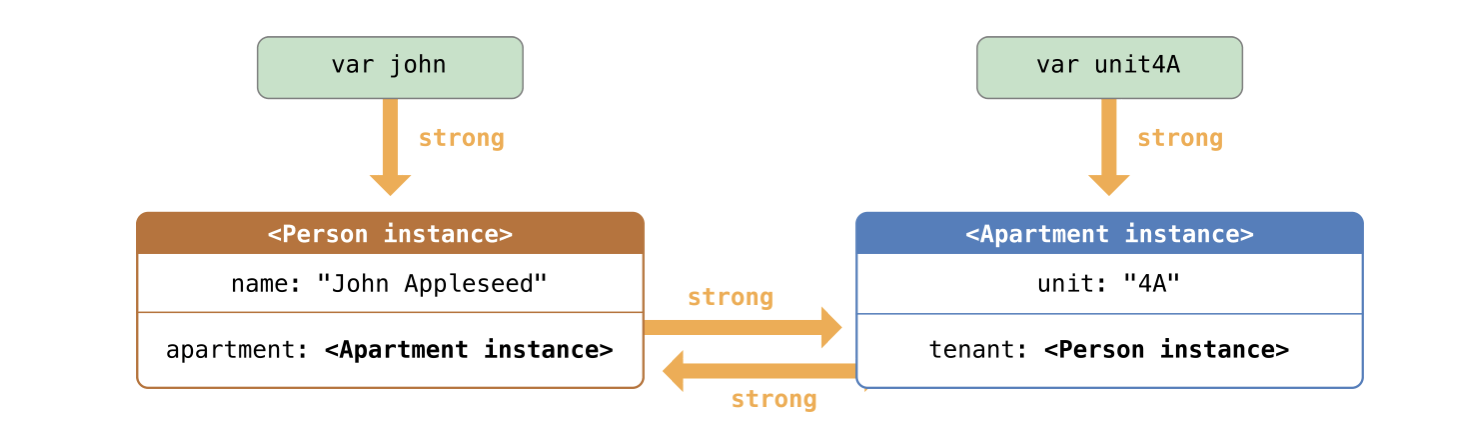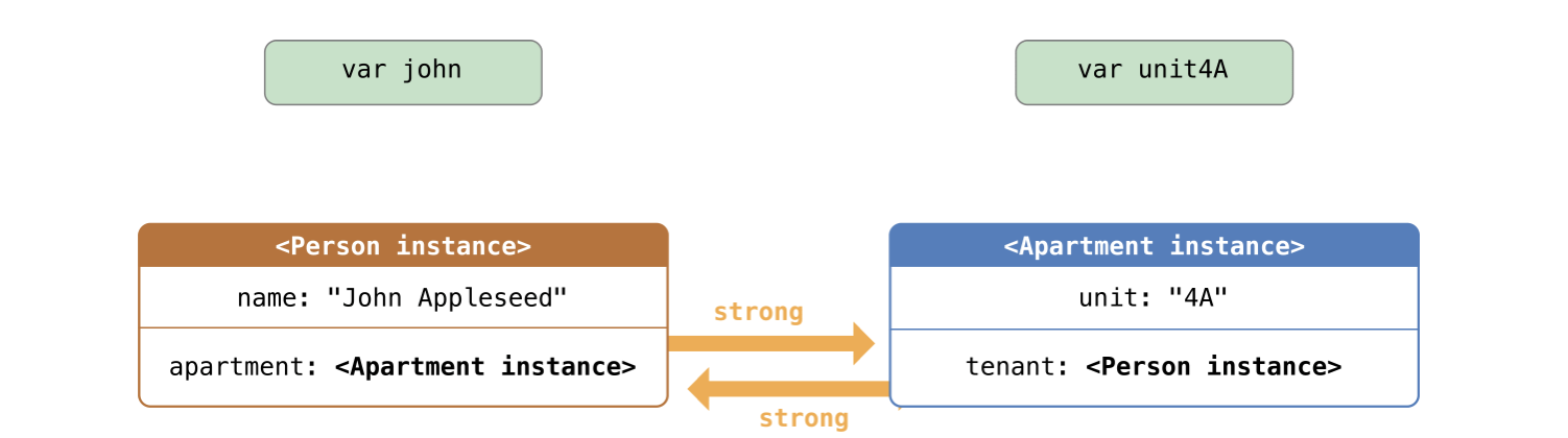 unit4A라는 변수는 Apartment(unit:"4A")라는 클래스 인스턴스를 강한참조하고 있다!!