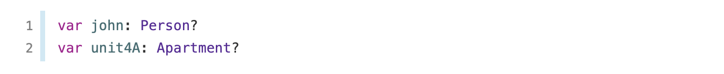 Person 클래스와 Apartment 클래스를 정의하고 있다. 각각의 클래스 내부에서 서로의 클래스 타입을 가지는 변수를 소유한다.