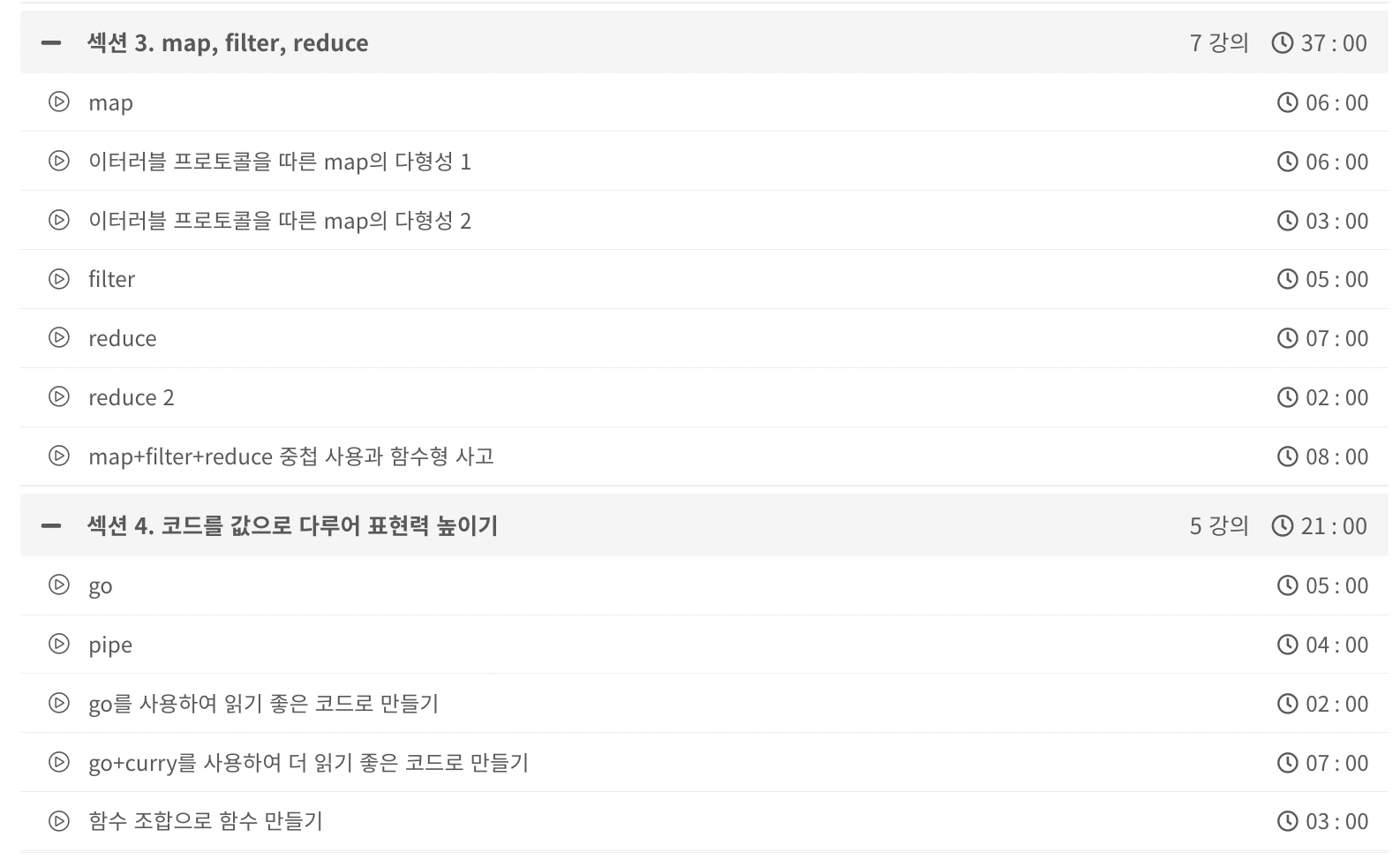 오늘도 유인동님의 함수형 프로그래밍 강의를 복습했어요~! 오늘은 정말 중요한 부분이었어요! curry라는 함수를 만들어서 다양한 FP관련 함수를 감싸서 활용성을 증가시켰어요(인자를 부분적으로 받을 수 있도록 설정) 또한 go라는 함수를 통해서 일련의 행동들을 순차적으로 보다 직관적으로 할 수 있도록 바꾸는 것까지 했어요!