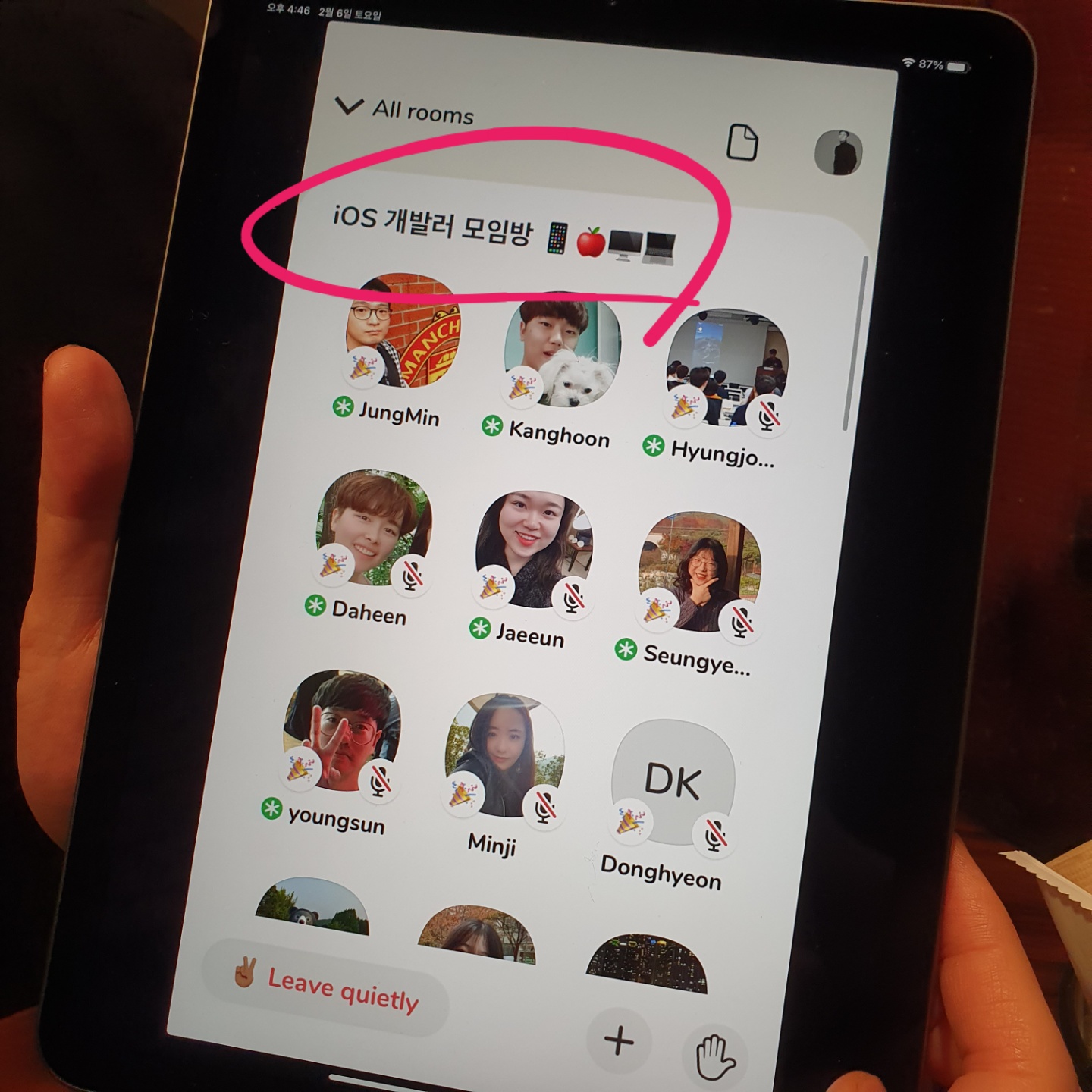 많은 분야의 개발자들도 빠르게 클럽하우스에 모이고 있습니다. 개발을 할 때 자신의 관심분야에 대해서 많은 사람들과 같이 이야기 할 수 있으면 정말 좋죠. 밑에 보이는 사진처럼 개발에 대한 다양한 방들이 열립니다. 가볍게 들어가 들으면서 새로운 지식과 정보를 얻을 수 있습니다. 또한 자신의 의견도 손을 들어 쉽게 이야기 할 수 있습니다. 그리고 클럽하우스에는 다양한 분들이 많이 계십니다. 밑에 2번째 사진은 iOS개발러 모임방의 대화를 듣고 계신 분들이 표시되어 있는데 그중에는 비바리퍼블리카의 대표(이승건)님도 듣고 있습니다. 이렇게 클럽하우스를 이용하면 평소에는 만나기 어려운 분들과도 대화를 할 수 있고 다양한 지식과 생각을 공유할 수 있습니다.