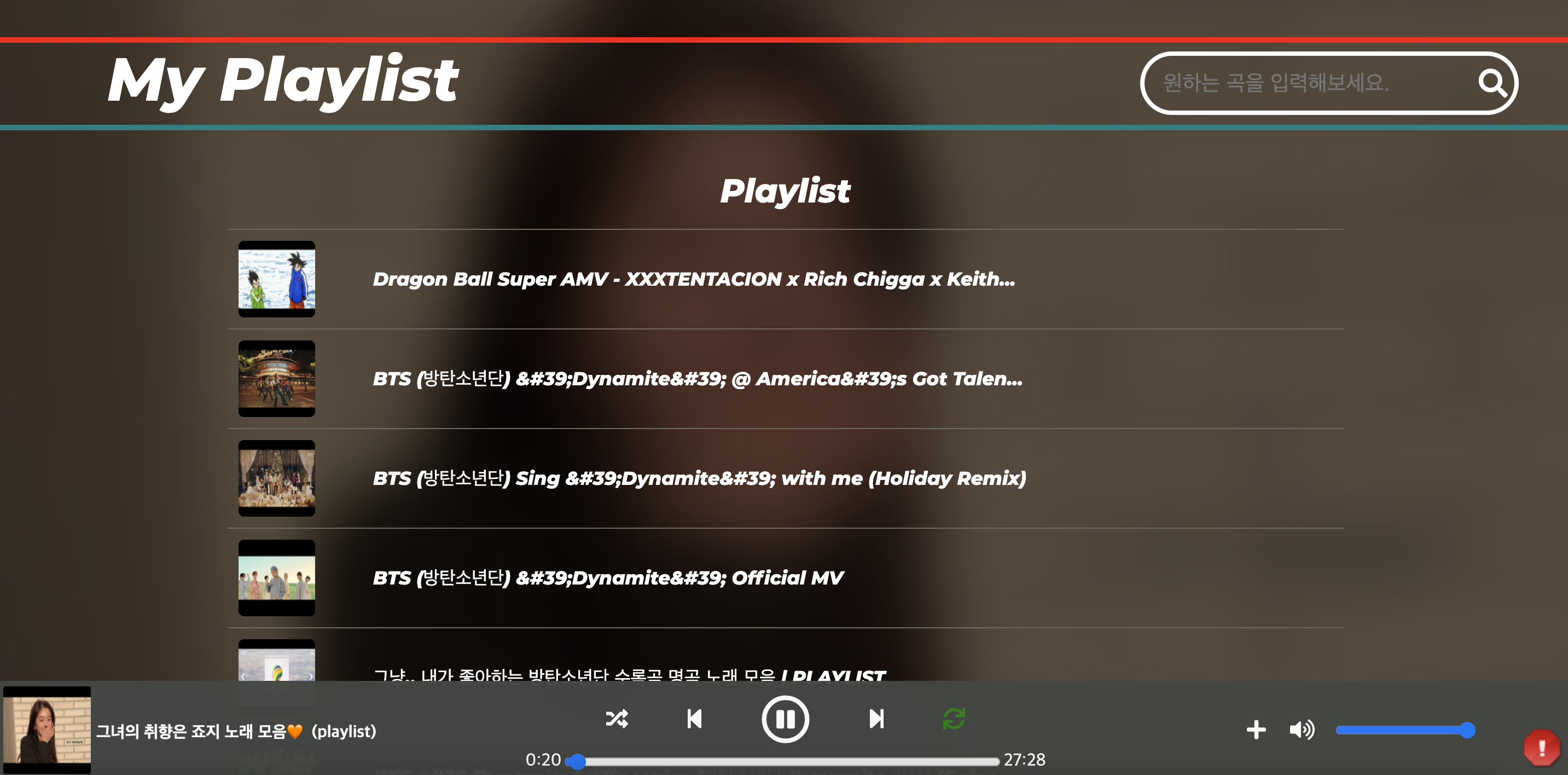 1. 개인 프로젝트를 진행했습니다.(플레이어 랜덤재생, 한곡반복 등)