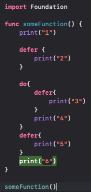후처리 defer는 지금까지와의 개념과는 살짝 다르다. defer{} 이렇게 실행하면 저 괄호안에 들어있는 것은 코드블럭을 나가기 전에 반드시 실행되는 것이다. 예를 보는 것이 이해가 더 빠를 것 같다.