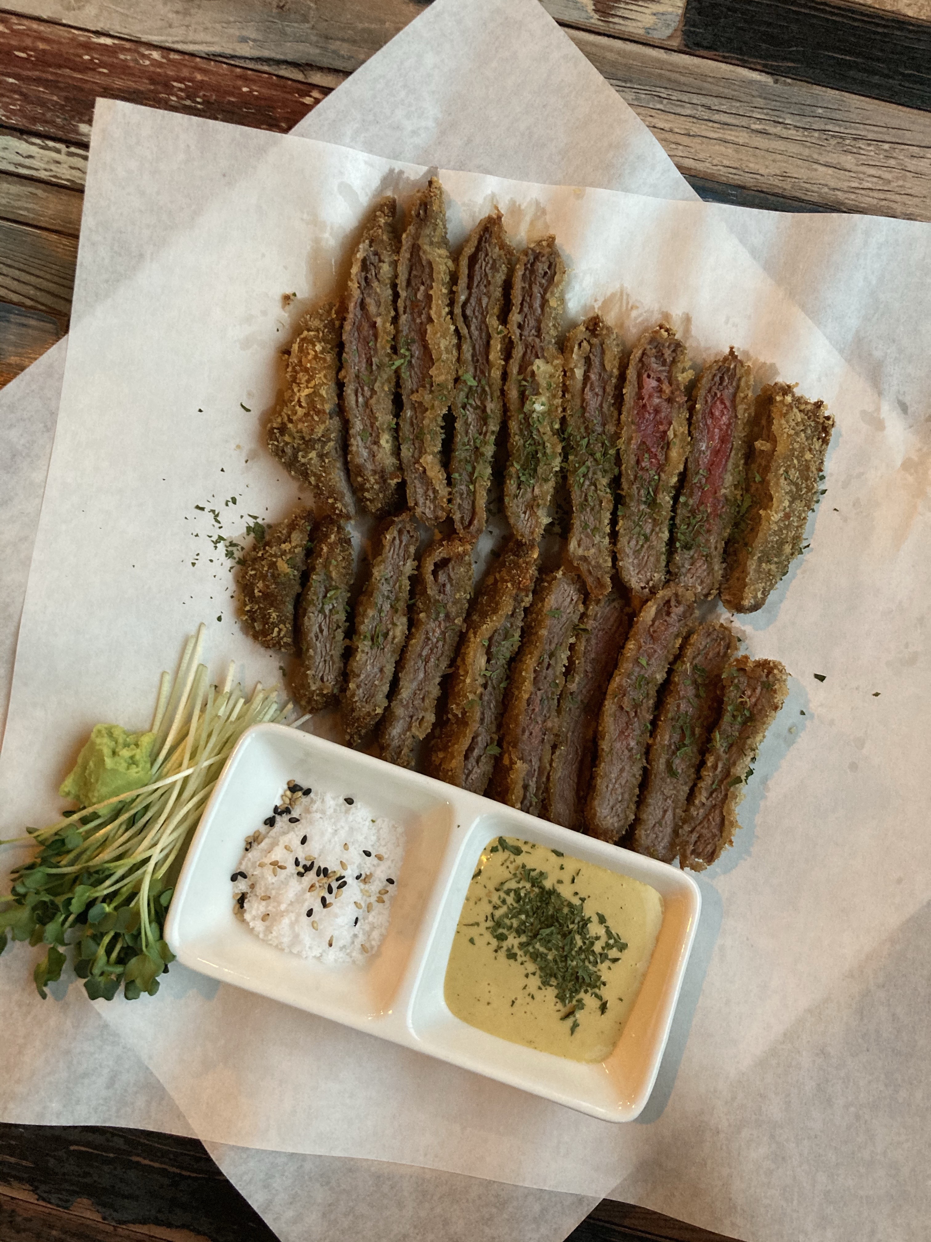 오늘은 저녁에 친구와 맛있는 한우튀김을 먹었어요! 진짜 엄청 맛있었어요. 원래 사진 잘 안찍는데 너무 이쁘더라구요.ㅎㅎ